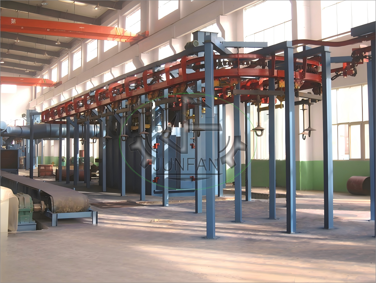 Q58系列 積放式懸鏈拋丸清理機(jī)是一種高效、自動(dòng)化的表面處理設(shè)備,主要用于鑄件、鍛件、結(jié)構(gòu)件等工件的批量拋丸清理,去除表面氧化皮、銹層、毛刺等,同時(shí)增強(qiáng)工件表面抗疲勞性能。以下是其核心特點(diǎn)和應(yīng)用簡(jiǎn)介: