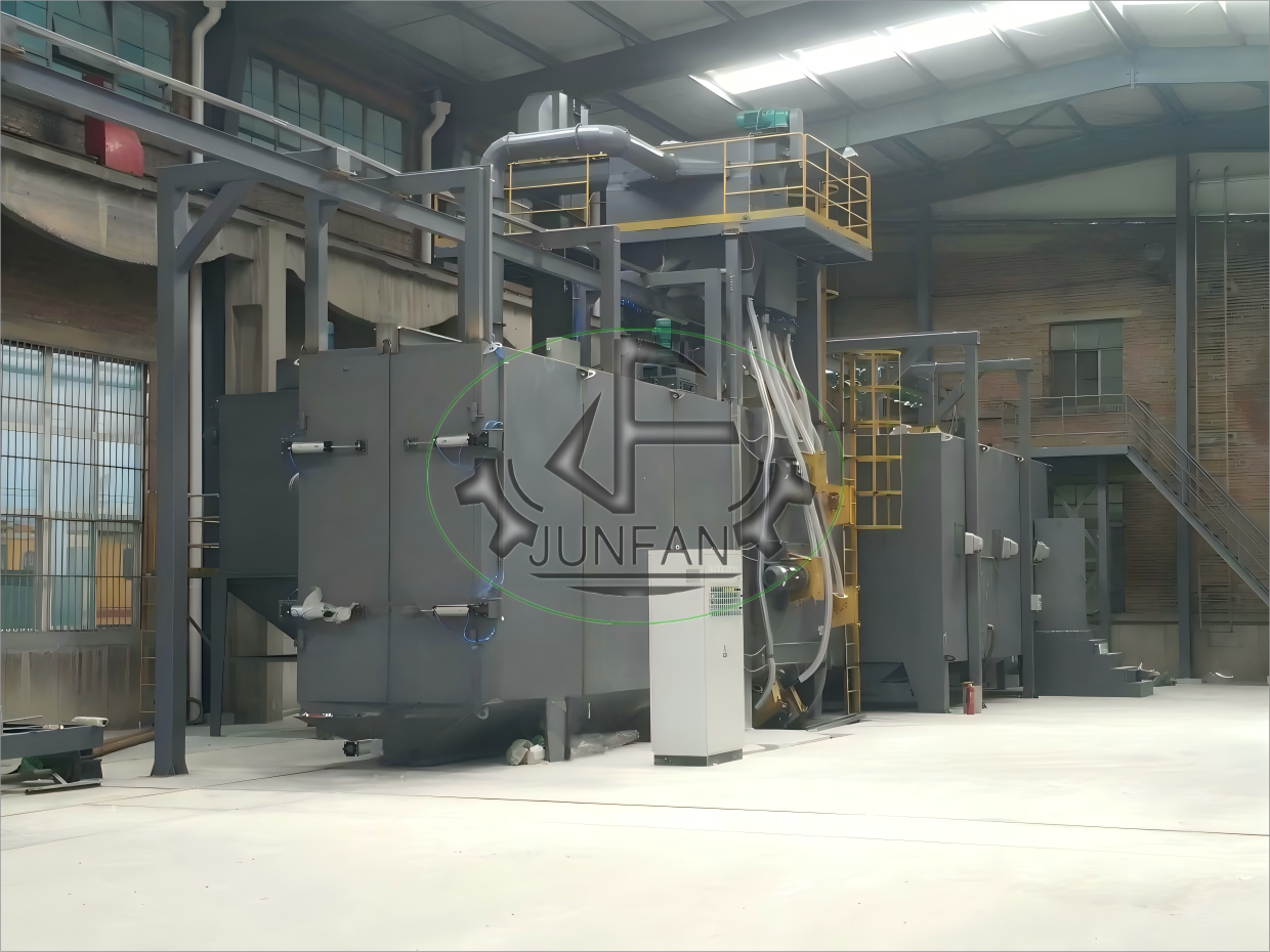 ? ? ? QT37系列 吊鉤通過式拋丸機是一種結(jié)合了吊鉤式和通過式特點的拋丸清理設(shè)備,主要用于處理中小型鑄件、鍛件、焊接件等需懸掛清理的工件。它兼具高效連續(xù)作業(yè)和靈活吊掛的優(yōu)點,適合批量生產(chǎn)且形狀復(fù)雜的工件。